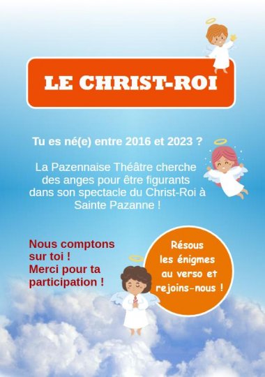 Cette année, le spectacle du Christ Roi se produira au théatre TMP entièrement rénové (théatre Jeanne d’Arc) de Sainte Pazanne.